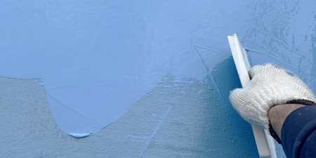 防水性の高い塗料を使い、厚い層になるように塗装していきます。