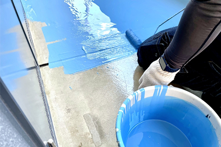 防水性の高い塗料を使い、厚い層になるように塗装していきます。