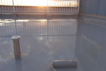 防水層は紫外線に弱いため、塗装後は上からトップコートで保護します。